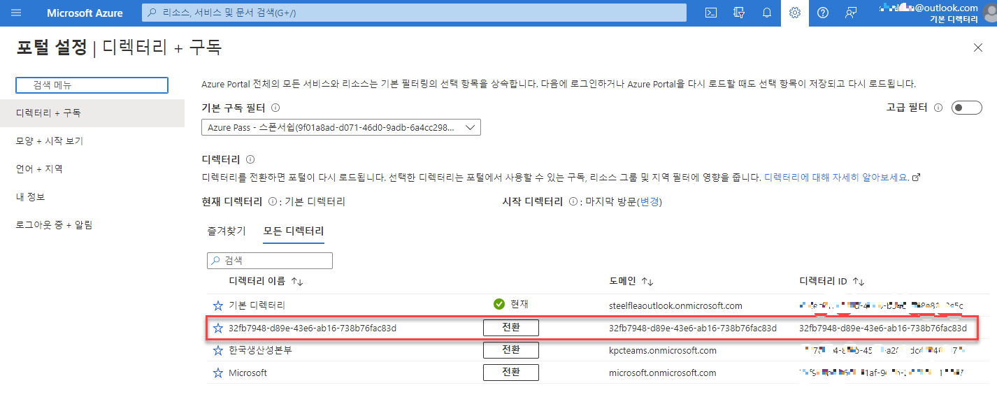 Azure Active Directory 테넌트 관리에서는 보이지 않던.... 테넌트 하나가,